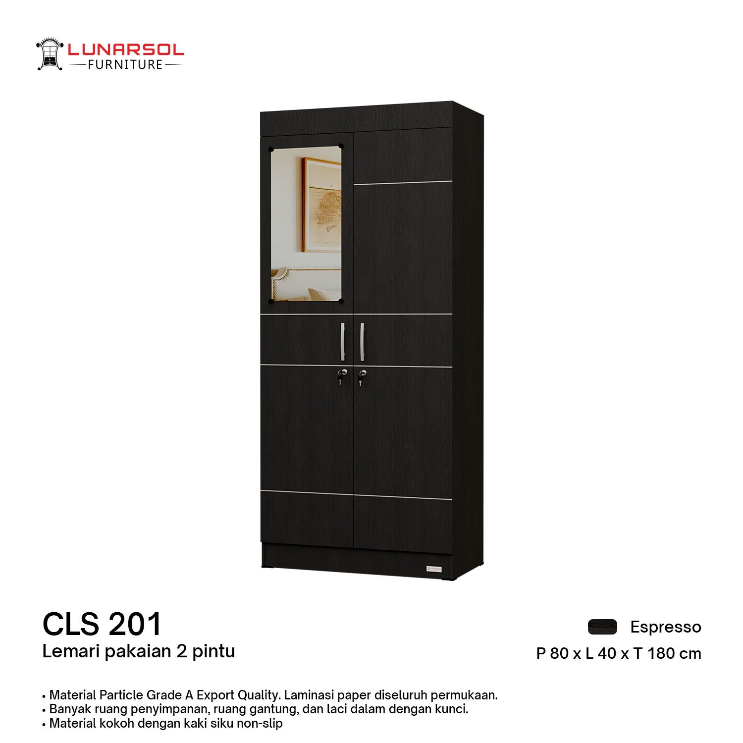 Lemari Pakaian | Lemari 2 Pintu | Wardrobe modern, minimalis, dan berkualitas dari Lunarsol Furniture
