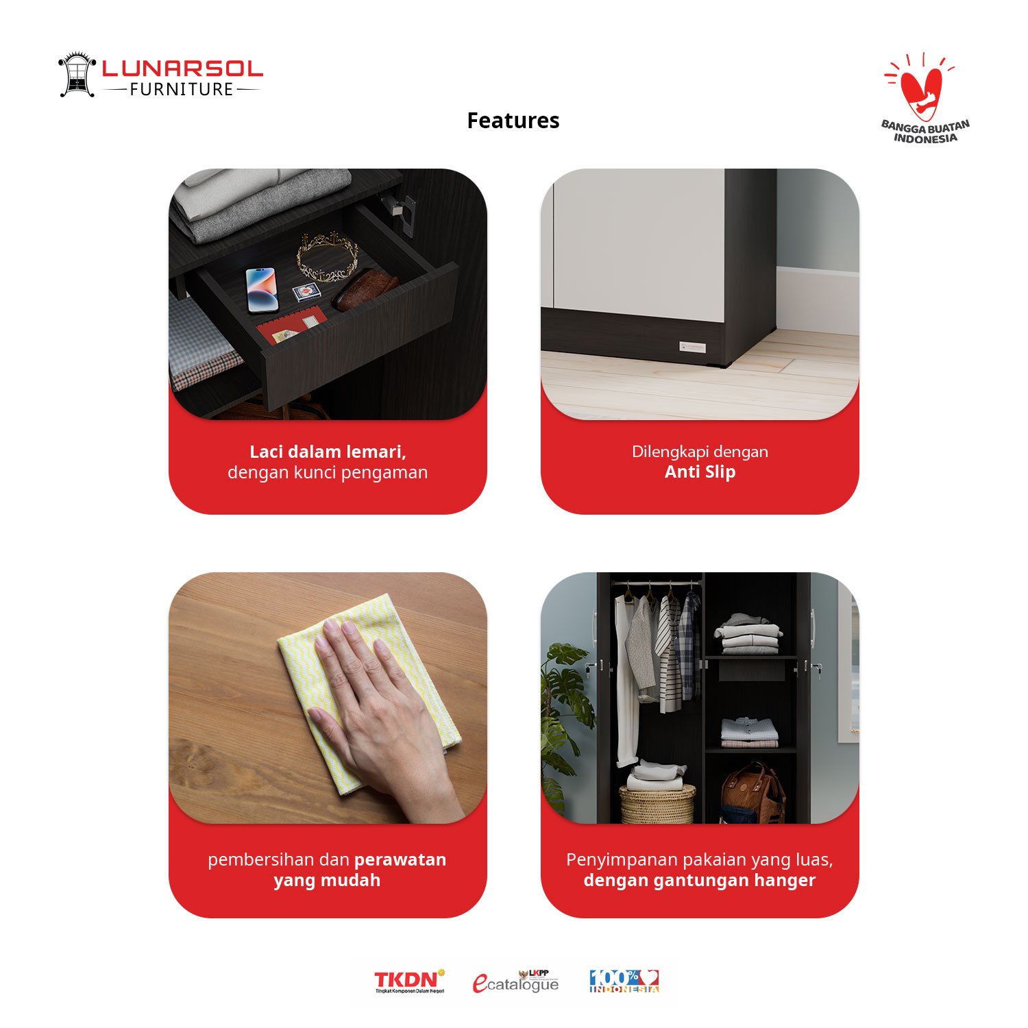 – Material: Japan-certified Grade A hardwood particle board