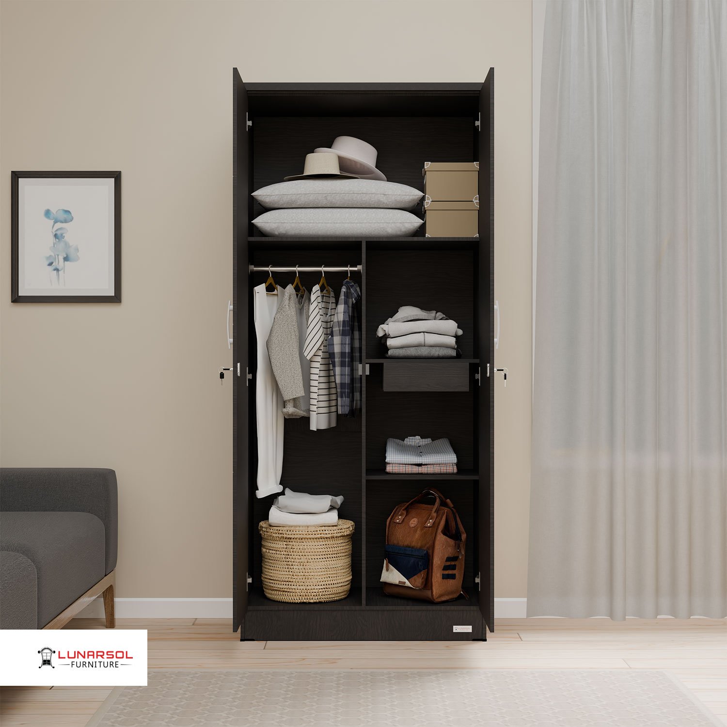 Lemari pakaian | Lemari pakaian 2 pintu | Lemari baju minimalis modern | MONOCHROME