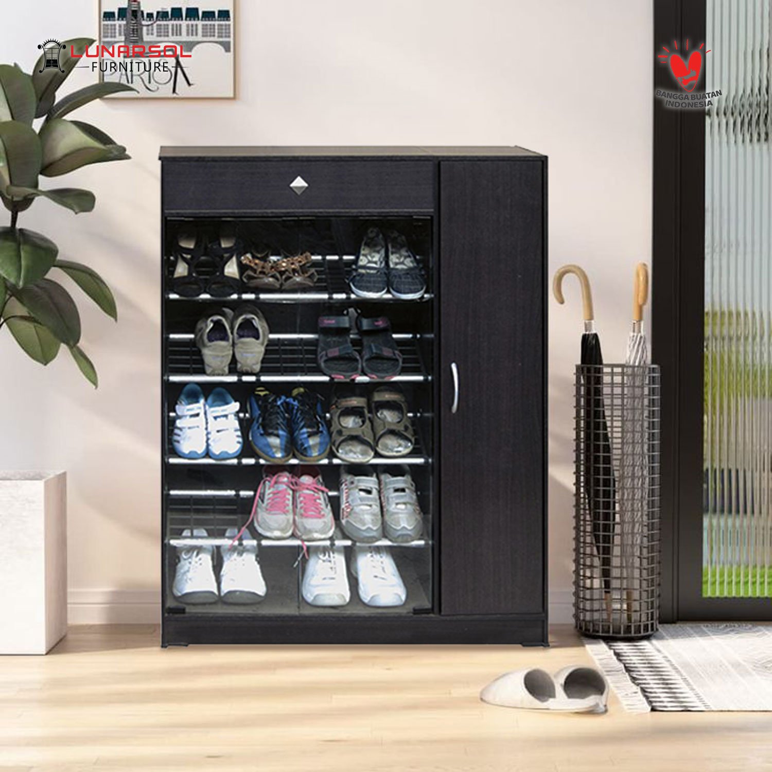 Rak sepatu modern, simpel, dan berkualitas dari Lunarsol Furniture.