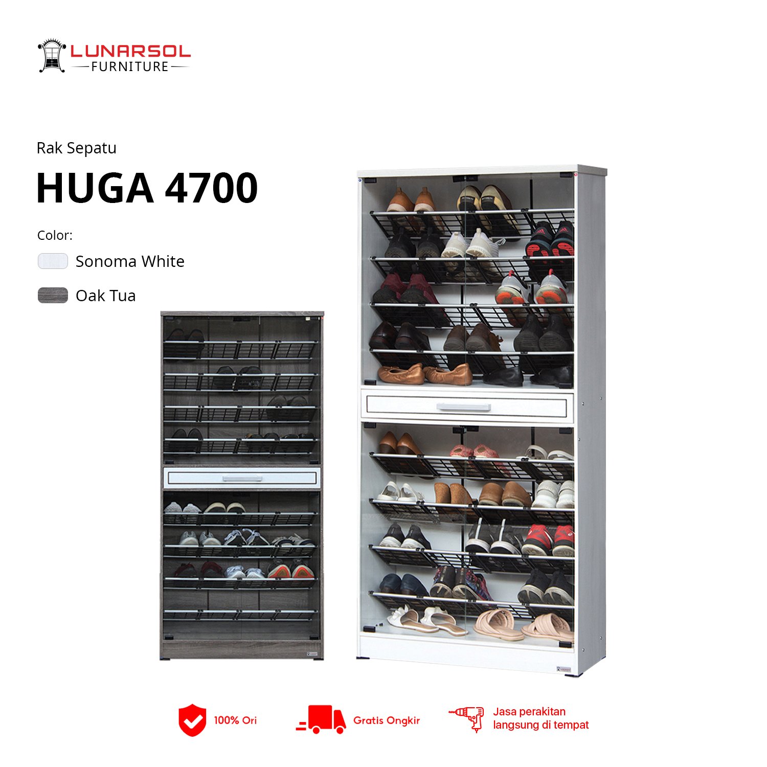 Rak Sepatu HUGA 4700 adalah solusi penyimpanan sepatu yang elegan dan fungsional untuk rumah Anda. Dengan desain modern dan minimalis, rak ini menawarkan kapasitas besar untuk menyimpan puluhan pasang sepatu berbagai ukuran. Dibuat dari bahan berkualitas tinggi, HUGA 4700 tahan lama dan mudah dibersihkan. Dilengkapi dengan sekat-sekat yang dapat disesuaikan dan laci tambahan untuk menyimpan aksesori, rak ini memastikan semua koleksi sepatu Anda tetap terorganisir dan mudah diakses. Mudah dipasang dan cocok untuk berbagai dekorasi rumah.