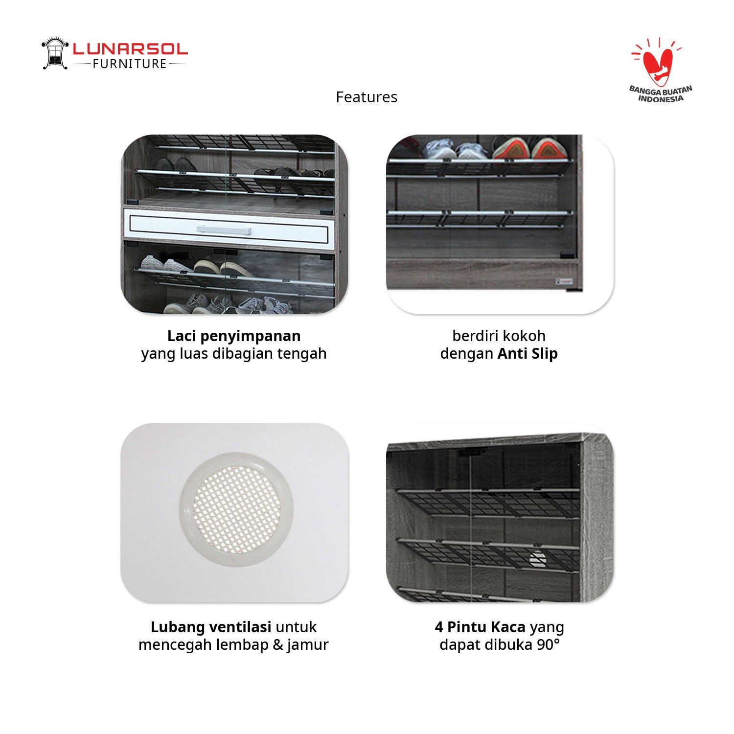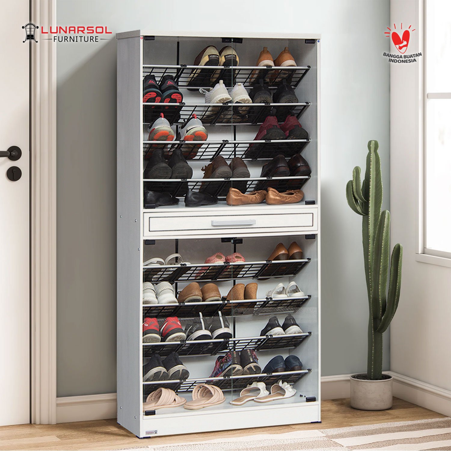 Rak sepatu modern, simpel, dan berkualitas dari Lunarsol Furniture.