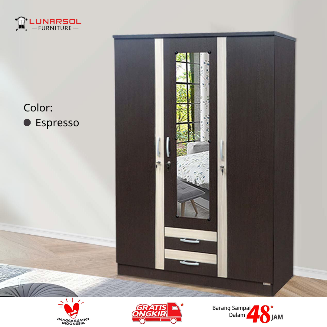 Lemari pakaian | Lemari baju minimalis modern | Lemari pakaian 3 pintu | Lemari baju 3 pintu | Lemari 3 pintu | Lemari pakaian dengan laci